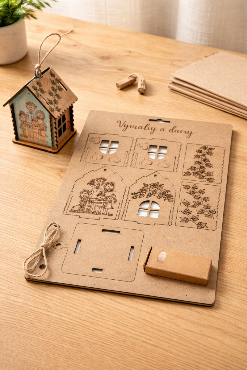 3. Cedulka k vybarvení + pastelky 21x30cm - Domek rodina
