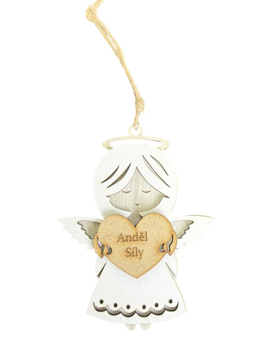 Dřevěný andílek 13cm - Anděl štěstí