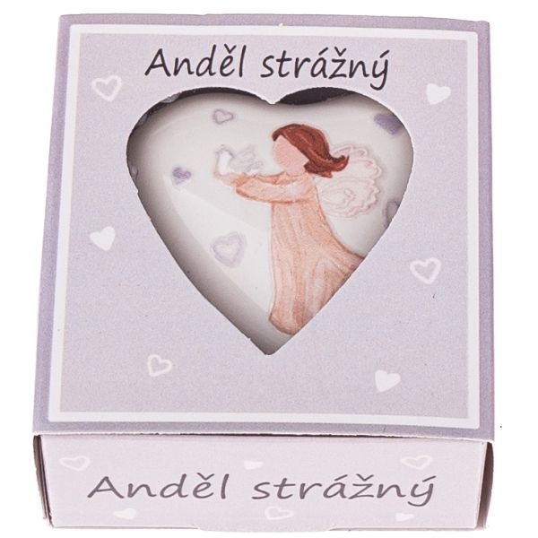 3. Porcelánové srdce v krabičce s andělem 5x5cm - Anděl Strážný